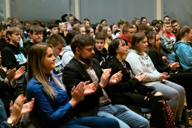 Na spotkanie w sali widowiskowej w Augustowskim Centrum Edukacyjnym przybyło kilkuset uczniów augustowskich szkół średnich. Cieszymy się z Waszej obecności i obiecujemy, że to nie ostatnie wydarzenie skierowane do młodzieży.