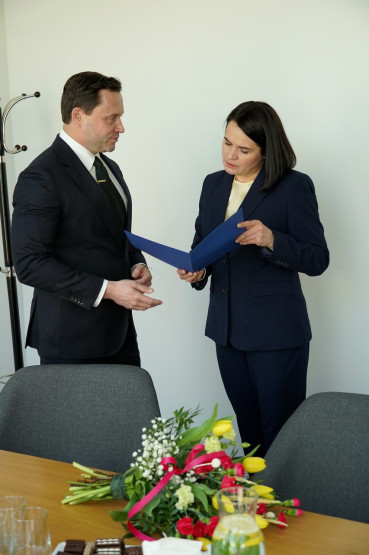 Swiatłana Cichanouska, liderka białoruskiej opozycji, w Domu Pamięci Obławy Augustowskiej - Instytut Pileckiego