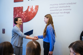 Wycieczka rozpoczęła się od wizyty w głównej siedzibie Instytutu Pileckiego i spotkania z prof. Magdaleną Gawin - Dyrektor Instytutu oraz z Zastępcą Dyrektora - dr Wojciechem Kozłowskim. Podczas spotkania zostały wręczone akty powołania członkom Młodzieżowej Rady Instytutu Pileckiego.
